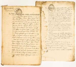 YVELINES. VERSAILLES 1762. INVENTAIRE MOBILIER: 2 Expéditions notariées sur papier timbré de la Généralité de Paris: Inventaire et Liquidation du 18 Septembre 1762, à la requête de Philippe LEMOINE, Picqueur à la PETITE ÉCURIE DU ROY à VERSAILLES, y demeurant paroisse Notre-Dame, des biens de défunte Marie Marguerite LEFEVRE son épouse, auparavant Veuve du Sieur Jacques BRUNEL Délivreur à la Petite Écurie du Roi + autre acte de 1768, concernant toujours Philippe LEMOINE, devenu Contrôleur des Équipages de la Petite Écurie du Roy.