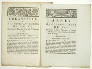 PARIS. SALPÊTRE. 2 Imprimés: “Ordonnance de Mr le Lieutenant Général de POLICE (LENOIR), …