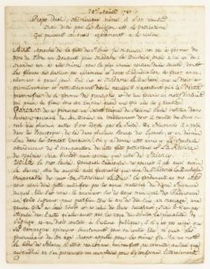 VAUCLUSE. 1787. LA ROSIÈRE DE CADEROUSSE. «Projet idéal» pour la Fête patriotique de la Rosière de CADEROUSSE, s'inspirant de celles de VALRÉAS et de SALENCY. Manuscrit du 20 Août 1787, de 4pp in-8° - «Aux approches de la fête de St Louis, je m'occupe non pas à former des dons de flore un bouquet pour Madame la Duchesse mais de lui en demander un à elle même... Le spectacle attendrissant de l'inauguration de cette fête patriotique et La Rosière de VALRÉAS sera bientôt aussi connue que celle de SALENCY. Voilà le mot lâché. Pourquoi CADEROUSSE ne pourrait il pas aussi avoir la sienne sous es auspices aussi favorables de Madame la Duchesse inséparable de ceux de Monsieur le duc... un gratification tous les ans de 10 écus en mariage pour une pauvre fille à leur choix...» Il propose de 6 jeunes Caderoussiennes pour représenter la Rosière de Caderousse.