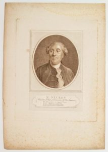 Jacques NECKER Ministre d'Etat, Gouverneur Général des Finances de Louis XVI (1732 - 1804) Gravure en sépia (39 x 27 cm), de son vivant (c. 1788)