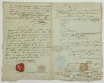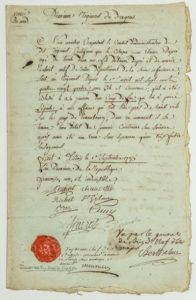 ARMÉE DU NORD. 2ème Régiment de DRAGONS. Certificat militaire pour Jean Etienne DUPRÉ âgé de 32 ans, natif de Rouen, sert au régiment depuis 1784, avec zèle et bravoure, Blessé d'un coup de feu à une affaire qui a eut lieu à SAINT-VIT, sur le pays de LUXEMBOURG. Fait à TILLOIS (Thillois Marne) le 1er septembre 1793. Nombreuses souscriptions signées du Général FOURNIER, dit FÉNÉROLS (Tué en Pologne), du futur Général MEUNIER, du futur général BERTHELLEMY, des Députés en mission, Charles de PEYSSARD Conventionnel de la Dordogne et Elie LACOSTE (1745-1806) Conventionnel de la Dordogne, et autres signatures. 4 pages (31 x 19 cm)