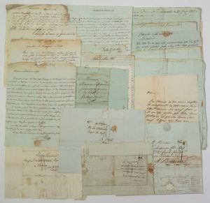 DRÔME. Château de VACHÈRES à Monclar-sur-Gernanne (26). Correspondance adressée à LABRETONNIÈRE Fils (ou LA BRETONNIÈRE), au Château de VACHÈRE à CREST, Propriétaire foncier et négociant. 27 Lettres de 1798 à 1832, parties de Paris, St Laurent d'Aigouze, Nîmes, Die, Marseille, Arles, Beaucaire, Lyon, Aigues Mortes, Montpellier et Marsillargues. Il est question du bétail, de la foire de Beaucaire, de vente du blé, de laines, de sel, d'agneaux, etc. (M. Labretonnière fut député de la Drôme au 18e et 19e siècle.)