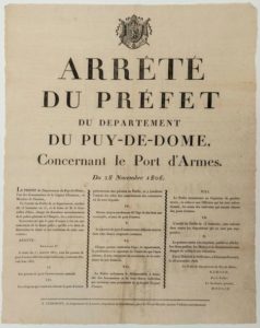 PUY-DE-DÔME. 1806. PORT D'ARMES. Arrêté du Préfet du Département du Puy-de-Dôme, concernant …
