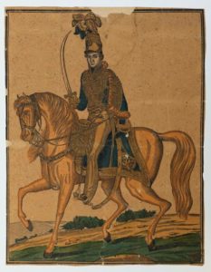 EMPIRE. IMAGE D'UN HUSSARDS POLONAIS de la Garde Napoléonienne. (47 x 36 cm) Etat C. quelques manques. Coloris anciens. Période Empire.