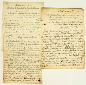 (LES JUPONS D'ÉLISA, Sœur de Napoléon 1er.) Dossier de 3 lettres et un petit inventaire. …
