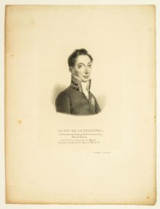 Le Duc de LUXEMBOURG (Charles Emmanuel Sigismond de MONTMORENCY LUXEMBOURG) Pair de France, Lieutenant-Général (1774 - 1861). Litho (36 x 27 cm) de Villain, 23 rue de Sèvres
