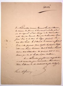 LAMARTINE fait l'éloge d'Edgar QUINET à THIERS. Alphonse de LAMARTINE Poète, Romancier et Homme politique. (Mâcon 1790 - Paris 1869). Lettre autographe signée, à la troisième personne, signée de son paraphe. Paris le 18 Février (1833 ou 1834) «Mr LAMARTINE remercie vivement Monsieur le Ministre du Commerce (THIERS) des secours si bien accordé et si bien placé sur Mme AGOULT. Il est chargé à lui transmettre aussi non une demande mais une réclamation bien fondée d'un de ses amis Mr Edgar QUINET... en faisant justice à Mr QUINET (il) aura le plaisir d'être utile à un jeune écrivain dont le talent promet tant à notre littérature. Mr QUINET est de ces hommes qui ne se laissent pas oublier. Mr de LAMARTINE profite avec empressement de cette circonstance pour renouveler à Monsieur THIERS l'assurance de ses sentiments distingués.» Adolphe THIERS est Ministre du Commerce en déc. 1832 à 1834, il deviendra Président de la République en août 1871 (1797 - 1877) ; Edgar QUINET, est Historien, Philosophe et Homme politique (1803-1875).