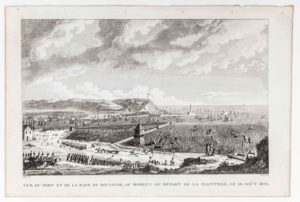 CAMP DE BOULOGNE (62). EMPIRE. «Vue du Port et de la rade de Boulogne, au moment du départ de la flottille, le 16 août 1803.» Couché sculpt. (c. 1834) - (31 x 47 cm)