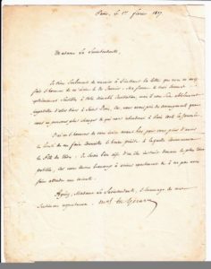 Comte GÉRARD Etienne Maurice (1773-1855) Général d'Empire, Maréchal de France en 1830. Ministre, Sénateur et Député. Lettre signée «Maréchal Comte Gérard» à la Surintendante de la LÉGION D'HONNEUR à SAINT-DENIS (93). Paris le 1 Février 1837. 1p (24 x 19). «Madame la Surintendante,... Ma femme et moi sommes extrêmement sensibles à votre aimable invitation, mais il nous sera impossible d'aller diner à Saint-Denis, car, nous avons pris des arrangements que nous ne pouvons plus changer & qui nous retiendront à Paris toute la journée.» Il demande l'heure précise à laquelle commencera la Fête des Élèves: «Je serais bien aise d'en être instruit demain le plus tôt possible, car nous tenons beaucoup à arriver exactement...»