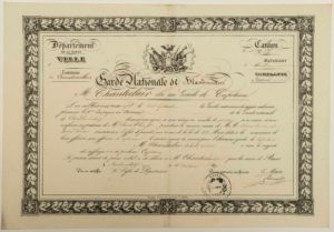 MARNE - “GARDE NATIONALE de BRANDONVILLERS” - BREVET de Mr Hubert CHANTECLAIR notaire élu au …