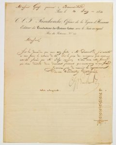 Charles Louis Fleury PANCKOUCKE Éditeur, Écrivain et Traducteur. (Paris 1780 - Meudon 1844). Lettre signée à son entête gravée. Paris le 20 Juin 1840. 1p in-4°. Sur la demande de Mr GUY, procureur à Bonneville (Savoie). Il consent à faire un rabais de 60 francs sur le prix des ouvrages qui ont été placés par M. JOLY Voyageur.