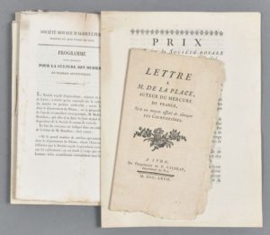 « Etablissement horticole d'Alexandre Chauvière - Prix courant pour 1846 de Dahlias, Géraniums et autres plantes variées » (40 pp. in-8, très nombreuses variétés proposées). « Lettre à M. De Laplace auteur du Mercure de France sur un moyen assuré de détruire les Courtillières » (1767, 11 pp. in-8). « Prix proposés par la Société Royale d'Agriculture de la généralité de Paris » (1764, 3 pp. in-4). « Programme d'un concours pour la culture des mûriers en prairies artificielles » (6 pp. in-8, [1829]). « Exercice du droit de pâturage dans les forêts nationales » (an 6, 8 pp. in-8). « Catalogue des plantes cultivées par J. Sisley-Vandael, horticulteur. 1836-1837 » (14 pp. in-8). Prospectus de La Revue Agricole dirigée par Prosper de Lagarde (1838, 4 pp. in-8). « Mémoire sur la conservation des blés » (14 pp. in-8, début XIXe).