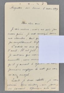 « Merci, mon cher ami, de vos aimables félicitations au sujet de ma nomination de correspondant du Muséum. [] Je n'ai pas d'article de 4 à 6 pages à vous offrir. Ce que je peux vous donner, c'est un travail complet sur la façon dont se nourrissent les reptiles de l'Indre. Mon mémoire sur l'Alouette est presque terminé [] ». A propos des articles de son Histoire d'Argenton, notamment un consacré à Barbotin avec phototypies à l'appuie, dont un superbe cliché « exécuté à Paris par un Prince de l'Art ».