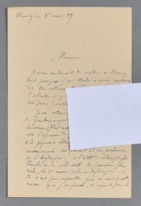 Intéressante lettre sur ses travaux et ses réflexions sur la chlorophylle. Il le remercie des communications à l'Académie qu'il lui a fait remettre, et lui demande des précisions, en particulier sur les travaux de Gautier qui considère que « le pigment chlorophyllien passerait successivement, en prenant et en perdant de l'hydrogène, à l'état de chlorophylle blanche et de chl. verte, la première plus riche, la 2e moins riche en hydrogène ». Selon lui, « il n'est pas impossible que ce soit à cette source que j'ai puisé, n'ayant pas le loisir, talonné que j'étais par un éditeur impatient d'ajouter un volume à sa bibliothèque de vulgarisation, de vérifier les données bibliographiques avec le scrupule que réclament les travaux originaux. Cette chlorophylle blanche venait en effet très à propos pour combler un desideratum que je n'étais pas seul à constater. Timiriageff la suppose quand il dit, en comparant la chlorophylle aux substances sensibilisatrices [] : on pourrait objecter que la chlorophylle vivante ne se comporte pas de la même manière, qu'elle n'est pas décolorée par la lumière. Mais on peut répondre à cette objection par la supposition que la chlorophylle tant qu'elle fonctionne, est régénérée à mesure qu'elle se décompose [] ».