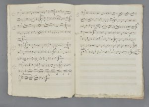 [CLARINETTE, VIOLON ET BASSE]. Quadrille de contredanses et une valse sur les airs de Robin des Bois pour clarinette violon et basse [par] A.B. Manuscrit musical signé « A.B. » et daté 1829. 3 manuscrits correspondant aux parties de chaque instrument, chacun signé en fin « A.B. » et daté « 1829 », comprenant chacun une page de titre et 2 pages de musique.