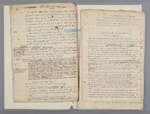 Il s'agit de trois versions différentes, avec biffures, corrections et ajouts, d'un même texte consacré aux études harmoniques dans la musique : « On appelle proportion harmonique celle dont le grand terme est au petit terme, comme l'excès du grand terme sur le terme moyen est à l'excès du terme moyen sur le petit terme. 6.8.12 sont en proportion harmonique parce que de même que 12 contient deux fois 6, ainsi que 4 dont 12 surpasse 8 contient deux fois le 2 dont 8 surpasse 6 [] ». Rare manuscrit du XVIIIe de théorie sur la musique, qui semble inédit.