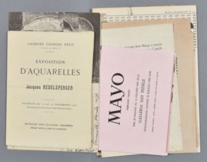 Exposition d'aquarelles de Jacques REDELSPERGER (déc. 1918, galerie Georges Petit), oeuvres de Jacques-Emile BLANCHE (mars 1924, galerie Charpentier), Jacques BILLE (janvier 1924, galerie Georges Petit), McINTOSH and Artists of Bradley University (avril 1949, Argent Galleries, New York), MAYO (2 à Paris et en Italie, 1965), BIERGE (1965), YO LAUR, Léo BREUER (1951).
