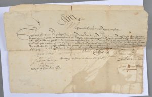 Spectaculaire pétition signée par 75 citoyens de Marseille, en faveur de Louis de Cabre, consul de la ville [il le fut en 1602] contre Nicolas Frotté, à la suite des troubles survenus à la mort du grand Prieur de France. Parmi les signataires figurent deux Doria, Riquetty, Bourguignon, etc.