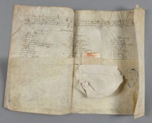 CÔTE D'OR. Jean V d'AUMONT (mort après 1521), seigneur de Couches et Montagu, baron de Nolay, Estrabonne, etc. lieutenant général en Bourgogne. Pièce signée sur parchemin, 51 x 47 cm, scellée par un sceau sous papier. Découpes dans les coins inférieurs. [Saulieu], 19 juin 1509.