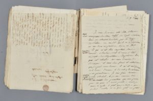 Intéressante correspondance sur la production et le commerce de ses vins de Bourgogne (Vosne-Romanée et Nuits Saint-Georges). « J'ai reçu la nouvelle de la vente de mes vins de cette année. Monsieur, il me semble que nous n'avons pas gagné grand chose surtout sur les termes : mais j'aime cependant mieux qu'ils soient vendus, je ne regrette qu'une seule chose c'est de n'avoir pas gardé une feuillette de St Georges, et une de Vosne, puisqu'on dit cette année si bonne. Je crois bien que cela ne se peut plus : je voudrais au moins garder une pièce de St Georges de 1814 dans le cas où on trouverait à vendre toutes les années antérieures à celle-ci []. Je laisserai le St Georges à 1100 f. et il faut qu'il paye le Vosne 800 f. [] ». « Il me semble que je ne dois pas être très mécontente de la qualité de la récolte de cette année puisque vous l'assimilez à 1814 ; je craignais à cause du mauvais temps qui a régné pendant la vendange, et qui l'a précédée, que la qualité n'en eut souffert tout à fait. Il s'agit maintenant de vendre et le plus tôt que vous pourrez [] ».