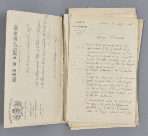 Correspondance de contributeurs, d'érudits, d'élus, etc. Envois et corrections d'articles, annonce d'ouvrages, annonce du maire de Nuits d'une « manifestation patriotique » pour célébrer un fait d'armes de la guerre de 70, manuscrit du discours du général Tricoche prononcé à Nuits en décembre 1885, manuscrit d'un discours célébrant les sapeur-pompiers, etc.