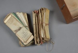 CÔTE D'OR. Une caisse ancienne en bois contenant environ 150 documents XVIe-XIXe, réparties en 2 liasses.