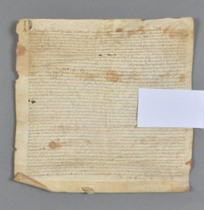 CREUSE. Charte sur parchemin, 26 x 25,5 cm. 15 septembre 1378. En partie transcrite. Quelques défauts, manque le sceau, texte bien lisible.