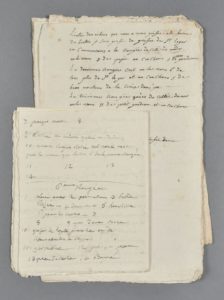 - notes autographes sur 5 feuillets in-folio (déchirure en coin) : « Plant au levant du bois de la Houssaye. 3ème rangée à partir de Chambray et montée du côté du couchant. 1er arbre au midi - la Germaine. 2e arbre en descendant vers le nord le Muscadet [] ». Liste des arbres fruitiers plantés : « Plan du haubois de Blondé 1766 []. 7e rangée est meslée du restant des greffes de la première rangée. 8e rangée du fresquin. La neufvième rangée de la rainette douce. Le tout greffé en 1766 [] ». « Dans la pépinière des Fours je greffe plusieurs espèces qui sont rainettes du Canada et petit blanc amer [] ».