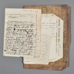- Lettres autographes signées de Nicolas de Chambray à son beau père Le Doulx (1675) et d'un autre Chambray à son père le marquis de Chambray (1759 avec cachet de cire armorié), 2 lettres adressées au baron de Chambray (1679-1684) + une procuration donnée au même au sujet d'un procès contre l'évêque d'Evreux.