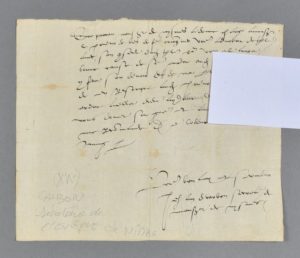 Au sujet d'une affaire concernant le prieuré de Bez. « Monsieur de Nysmes a donné charge à Monsr. le prieur de Bès de faire (convoquer ?) votre advocat de Toulouse avec son conseil dudit Toulouse pour voir s'il aura bonne cause de se joindre audit procès et y fera son devoir. De ma part ne fauldray de en rescripre audit prieur pour donner ordre à cella, Dieu aydant [] ». Il signe « Votre bon amy et serviteur Jehan de Carbon secrétaire de Monsieur de Nysmes ». [Le prieuré de Bez-Bédène bâti au bout de la vallée de la Selve, en Aveyron ; Claude Briçonnet, évêque de Nîmes était aussi seigneur de Lodève, d'où son secrétaire écrit cette lettre].