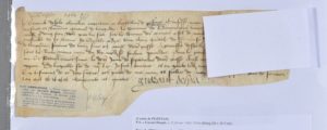 HÉRAULT. Gayrault DESPLA, « capitaine et chastellain de Pézenas ». Pièce signée sur parchemin. 26 x 10 cm. 25 février 1464.