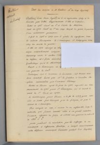 Notice autobiographique détaillant son action sous l'ancien régime (dans les îles de l'Amérique et durant la guerre d'Indépendance américaine) et la Révolution (en Bretagne). « Porté pendant la révolution par les suffrages de ses concitoyens à différentes fonctions, a rempli successivement celles d'officier municipal, d'économe gratuit d'un hôpital, d'administrateur de district. L'hôpital qu'il dirigeait [à Fougères] ayant été dévasté par l'armée des Vendéens, il fit entre les mains des représentants du peuple en mission à Rennes l'abandon entier de sa pension de retraite, espérant que ce sacrifice lui faciliteroit l'obtention des secours dont les pauvres, les malades et les blessés avoient besoin [] ».