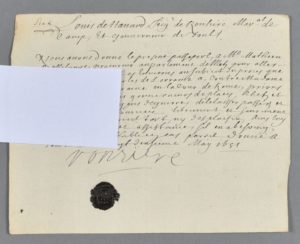 MEURTHE-ET-MOSELLE. Louis de Havard, seigneur de RONSIÈRE, gouverneur de Toul. Pièce signée. 1 p. in-4 oblong, avec cachet de cire. Toul, 22 mai 1651.