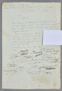 Pétition signée par les principaux habitants de Bessé [-sur-Braye] (officiers municipaux, médecin, notaire, etc.), attestant que Mre Richard « desservant depuis neuf ans s'est toujours bien comporté qu'il a remply ses devoirs ecclésiastiques avec la plus scrupuleuse exactitude. Comme habitant par ses égards, son honnêteté pour tous, son esprit conciliateur, il a maintenu la plus grande tranquillité dans la paroisse, qu'il soulage les malheureux plus que sa médiocre fortune le permet [] ». A la suite 17 des principaux habitants de Bessé ont signé. [Il est à remarquer que le comte de Montesquiou fera par la suite partie de l'administration municipale de Bessé].