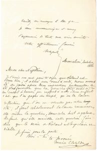 À PrOPOs Du PrOjet De Mariage De sa Fille laetitia avec sOn cOusin rOlanD [elle épousera en fin de compte son oncle maternel, Amédée de Savoie duc d’Aoste]. 21 avril 1883, invitation à dîner. 26 avril, confirmation de leur dîner, « d’autant plus satisfait de vous présenter un jeune bachelier ès sciences, mon fils Louis, qui a été reçu hier »… 1886. 5 octobre. Sa femme clOtilDe souhaite gagner du temps pour laisser leur fille réfléchir… 20 octobre. En allant à San Remo, il recommande de passer par Moncalieri pour une nouvelle entrevue : « je crois qu’on la désire mais on ne se rend pas assez compte de l’importance de la discrétion. Si cela s’ébruite, des ennemis peuvent faire soulever des difficultés »… 13 novembre. Selon sa femme, la situation est toujours la même. La Reine Margherita trouve le projet très bien, et le Roi Humbert s’y intéresse, mais il faut que ce soit elle qui se décide, et la mère elle-même y va doucement. « Vous avez ma parole et la conduite à tenir dépend beaucoup de vous. Si vous voulez brusquer j’irai à Moncalieri mais nous risquons de tout rompre c’est une entêtée »… 21 novembre : « Mon fils est arrivé, il est au courant et bien, c’est très bon. […] Du reste, croyez-moi, le temps ne peut qu’être favorable »… 18 septembre 1888, remerciements pour le présent offert à sa fille pour son mariage… On jOint 2 L.A. ou L.A.S. (minutes) de Roland Bonaparte au Prince Napoléon (1886), au sujet du projet de mariage.