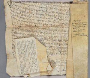 On joint un autre parchemin de 1604 : partage fait par Claude Genoud, notaire ducal à Abondance.