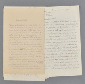 Intéressante correspondance sur ses recherches archéologiques, ses publications pour la Société archéologique et historique de la Charente, et les fouilles qu'il effectue en Vendée. Plusieurs lettres sont écrites de Pologne. « J'arrive de la Vendée où j'ai étudié le dépôt de cendres de Nalliers qu'on exploite aujourd'hui comme engrais. J'ai vu à l'Ilot aux vases l'immense tranchée bordée de ses falaises de cendres à pic de 2 ou 3 mètres de hauteur d'où sortent ça et là, comme des tibias, les étranges colonnettes à trois branches. Il y en a des milliers. J'ai vu les fragiles écopettes, aussi nombreuses que les colonnettes, mais beaucoup plus mutilées. J'ai vu enfin les planchers d'argile battue et calcinée, les innombrables fragments de terre cuite où sont moulées les branches des clayonnages [...] ».