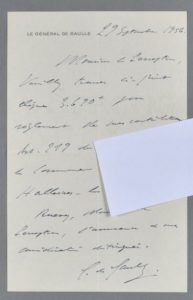 Charles de GAULLE. L.A.S. 29 septembre 1956. 1 p. in-8, entête « le général de Gaulle ». Il …