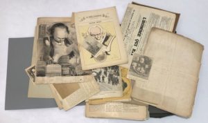 [Victor HUGO]. Un étui contenant un ensemble de documents iconographiques et de d'articles relatifs à Victor Hugo et son entourage, principalement de la seconde moitié du XIXe.