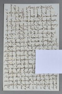 Longue et très belle lettre à un ami helléniste (ou grec), installé en Orient. Il commence par donner de ses nouvelles (voyages, emploi du temps, santé), puis se remémore des anecdotes du temps où il était en Orient. « Je me rappelle à Smyrne, une grecque dont le nom [écrit en grec] m'avait séduit par sa forme archaïque, qui demandait une piastre de plus pour opérer in naturalibus. En général ces mauvaises manières là sont enseignées par les prêtres qui cherchent en tout et sur tout à nous causer du désagrément. Si nous étions assis au coin du feu l'un et l'autre à fumer notre pipe, je vous conterais une dernière aventure qui vous amuserait et vous montrerait qu'il tombe quelquefois des alouettes toutes rôties (assurément embrochées au préalable) dans l'assiette des gens qui n'y pensent pas []. Je voudrais que vous me donnassiez des nouvelles de cette pauvre Grèce qui me paraît s'en aller à tous les diables. Je ne comprends pas ce petit Danois ramassant dans la crotte la couronne du roi Othon, autrefois ces vilenies là ne se faisaient qu'entre cadets et ainés. Franchement que fera-t-il de son diable de peuple ? Croyez-vous que les îles Ioniennes ajoutent beaucoup à la puissance hellénique ? [] ». Il commente longuement - et sans langue de bois, la situation nationale et internationale, la question polonaise, les Russes aux aguets, la stratégie de l'Angleterre, la campagne du Mexique « Considérez de plus que l'Angleterre a un ministre de 81 ans, que le roi Léopold a la vessie en loques et un fils poitrinaire et bête, que le roi de Prusse est bête et que les rouges font un travail de (sape ?) en Europe. Tout cela mon cher ami ne nous promet pas une vieillesse fort tranquille []. Je vous ai parlé de l'Occident, parlez-moi de l'Orient qui prochainement nous apportera peut-être des complications nouvelles. Adieu mon cher ami, tâchez de vous bien porter et de vivre en philosophe au jour le jour, le plus joyeusement possible [] ». Il ajoute un long postscriptum sur une médaille grecque, et de curieux commentaires sur les moeurs du moment. « Je m'aperçois que j'ai oublié de vous parler de l'état des moeurs. La dévotion fait des progrès et cependant la fornication et l'adultère ne diminuent pas. Les lesbiennes se multiplient. Rien de plus commun que des filles publiques qui ne tirent pas un coup par an. La vérole disparaît. Le préfet de police dit que la pédérastie augmente. Il n'y a guère d'actrice ou de (?) un peu à la mode qui n'ait une amie, ou qui n'entretienne une fille []. La Vierge apparaît partout où il y a des imbéciles pour payer une chapelle ».