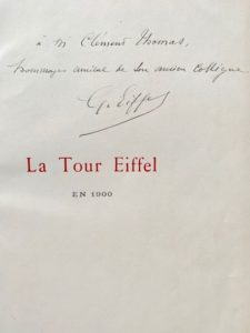 Envoi autographe signé de Gustave Eiffel sur la page de titre : « à M. Clément Thomas, hommage amical de son ancien collègue. G. Eiffel ».