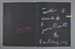 Envoi de Prévert sur toute la page de garde, aux craies de couleur (blanc, jaune et orange) sur fond noir : « Au docteur Noack. Jacques Prévert. Paris mars 1959 », orné de 4 petits dessins. Sur la page d'en face, André Villers a également signé.