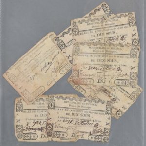 Billet de confiance de 5 sous de la municipalité de Pont-du-Château [Puy-de-Dôme] et 6 billets de 10 sous de la municipalité de Pionsat [id.].