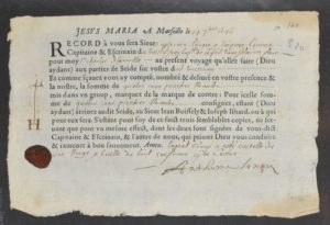 Bel ensemble de connaissements classés par ordre chronologique, de 1646 à 1850, concernant majoritairement le commerce de Marseille : voyages de Marseille à Agde (1646 et 1653, sacs de piastres), de Chypre à Marseille (1704), de Smyrne à Marseille (1739, cire jaune), 2 autres de Smyrne pour des balles de coton (1767-1770), de Marseille à Acre (1774, pour des sequins), de Marseille à Alger (1787, liqueurs, châtaignes, thon mariné et anchois), de Jérémie (Saint-Domingue) à Marseille (1790, café), des Cayes (Saint-Domingue) à Nantes (1790, café), de Marseille à New York (1822, essence de lavande), de Pointe-à-Pitre au Havre (plusieurs de 1828 à 1829 en particulier pour les armateurs Foache, café et sucre), de Marseille à Sète (Morues, savons, etc.), de Bordeaux à Dublin (1837, vins et liqueurs), etc.