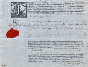 Superbe collection de connaissements français, italiens et espagnols, adressés aux armateurs Roux, à Marseille : voyages de Cadix à Marseille (1730, transport de piastres), de Smyrne (1736, sequins vénitiens), du Cap (1737), d'Alicante (1752, pour du « jambon de neige »), Saint-Pierre de Martinique (1754, sucre), Cap Français (1754, argent), Nice (1762, coton), Gandie (1762, « aignelins des montaignes de Gandie »), Port-au-Prince (1763, indigo), Port-au-Prince (1765, sucre et café), Schinzana (1771, grains), Port-Maurice (1773, huile), Venise (1774, porcelaine), Acre (1776, tissus fins et coton), Constantinople (1777, cire jaune), Salonique (1780-1785, coton), Alexandrette (1784-1788, toiles, coton, laine de chevrons noirs et de chevrons blancs), Smyrne (1783, coton filé), etc.