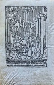 GRAVURE XVE SUR VÉLIN. Gravure sur bois du XVe, imprimée sur peau de vélin, 24 x 15 cm. Avec …