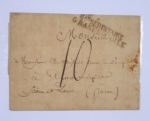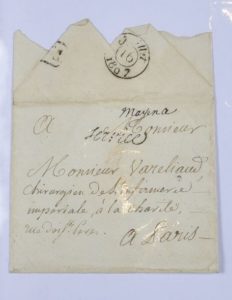 Enveloppe de 1807 avec tampon « service », mention manuscrite « Mayence » et cachet de cire impérial « conseil d'administration des postes relais » qui contenait une lettre écrite de Tilsitt du chirurgien de l'Empereur Boyer. « n°1 Corps d'observation » et mention manuscrite « service militaire de la marine ». « Hollande troupes Foises ». « n°4 Ar. d'Allemagne ». « Armée d'Afrique ». 4 lettres de la guerre de 1870. Une lettre avec 2 cachets rouges « capitaine des gardes de service » et « affranchie par état ». Une dernière lettre d'époque Empire : « Bau sédentaire Grande Armée ».