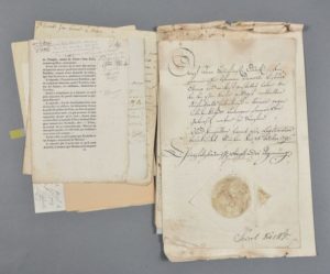 Lettres d'Anna Milder-Hauptman (l'amie de Schubert), Ernst Pauer, du baron de Vrintz (1773), du prince de Hesse (1784), documents révolutionnaires (Munich 1796-1797), manuscrit poétique, gravure dépliante du grand hôtel royal à Bonn, et pièces diverses.