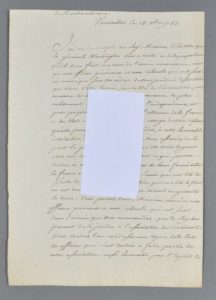 Copie d'époque de l'importante lettre du maréchal de Ségur à Rochambeau, l'incitant à rejoindre le Cincinnatus. « J'ai rendu compte au Roy, Monsieur, de la lettre que le général Washington vous a écrite, et de la position qu'il vous fait, au nom de l'armée américaine, ainsi qu'aux officiers généraux et aux colonels qui ont servi en Amérique sous vos ordres, de vous joindre à l'association qui vient d'être formée sous le titre de Cincinnatus, pour consacrer les noms de ceux qui ont concouru le plus activement à l'établissement de l'indépendance, et pour perpétuer la mémoire de l'alliance de la France et des Etats-Unis. Sa Majesté me charge de vous informer qu'elle permet que vous vous rendiez à cette honorable invitation. Elle veut même que vous vous assuriez de sa part le général Washington, qu'elle verra toujours avec une extrême satisfaction tout ce qui pourra tendre à maintenir et à resserrer les liens formés entre la France et les Etats-Unis [] ». Il l'invite à informer les officiers généraux que le roi accepte qu'ils rejoignent « l'association des Cincinnati » et lui demande une liste.