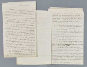 Longue et intéressante correspondance entièrement consacrée à l'oeuvre d'André Chénier, corrigeant l'édition de ses oeuvres, Jeu de Paume, l'Hymne aux Suisses, l'Aveugle, publiées par Emile Egger « avec de nouveaux fragments », et d'après ses manuscrits, dans la Revue des cours littéraires (1867) puis dans L'Hellénisme en France (1869). L'oeuvre inachevée de Chénier, publiée progressivement à partir de 1819, a fait de lui une figure majeure de l'hellénisme en France. Le titre complet de l'ouvrage d'Egger est L'Hellénisme en France, leçons sur l'influence des études grecques dans le développement de la langue et de la littérature françaises.